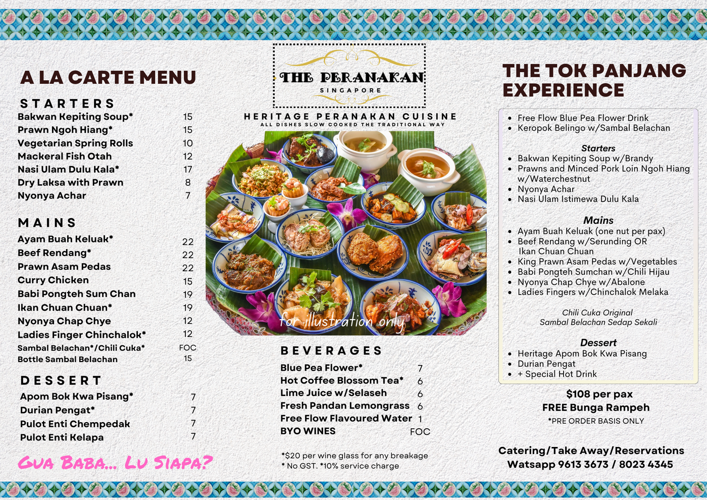 Executive Chef Raymond Khoo and his team serve three generations of delicious ‘mesti-cuba’ (must-try) Peranakan recipes, lovingly handed down by the Nonyas and Babas in his family